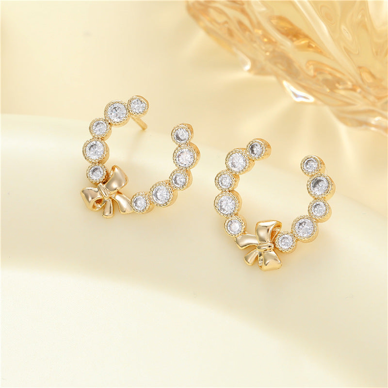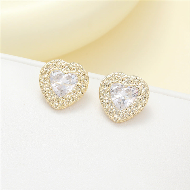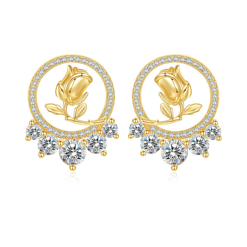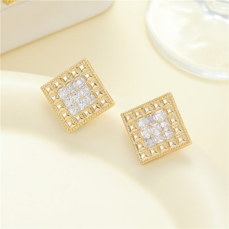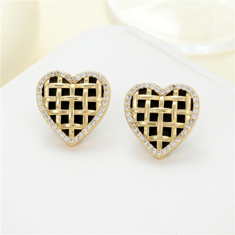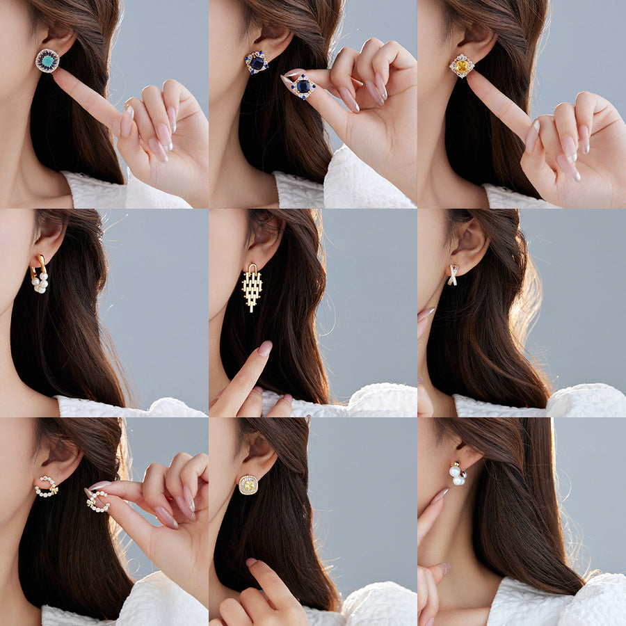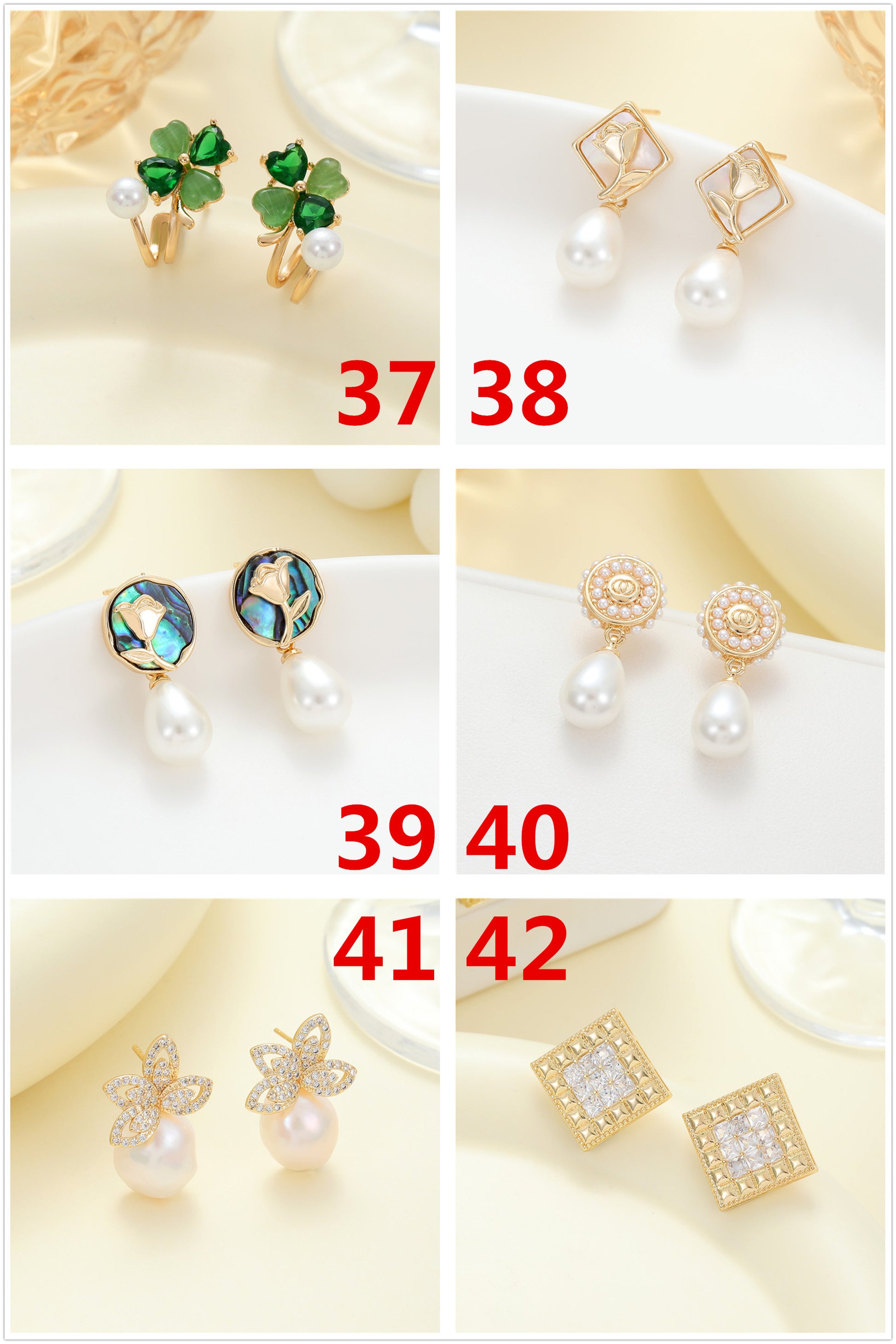 4 runde Kreis-Herzblatt-Schleifen-Rechteck-vierblättriges Kleeblatt-Ohrstecker, 14K GF-Strassverzierung