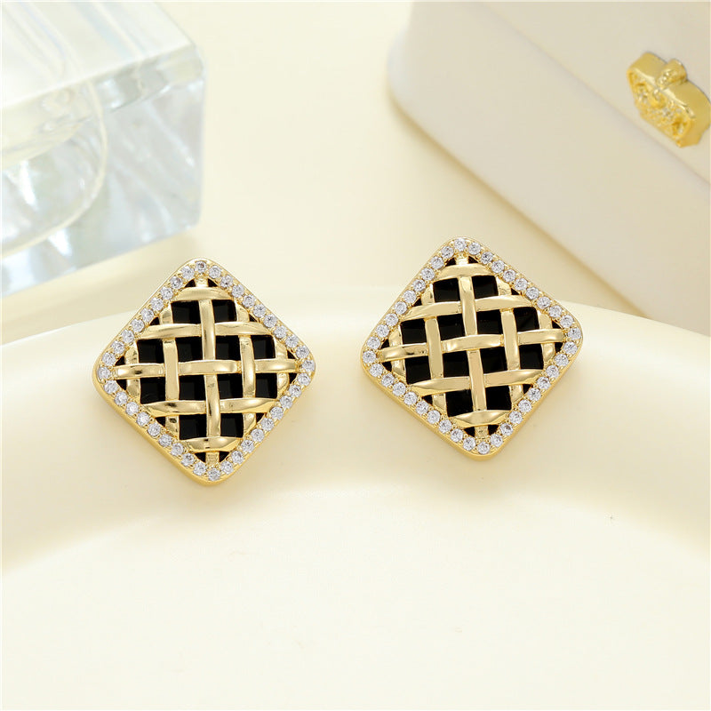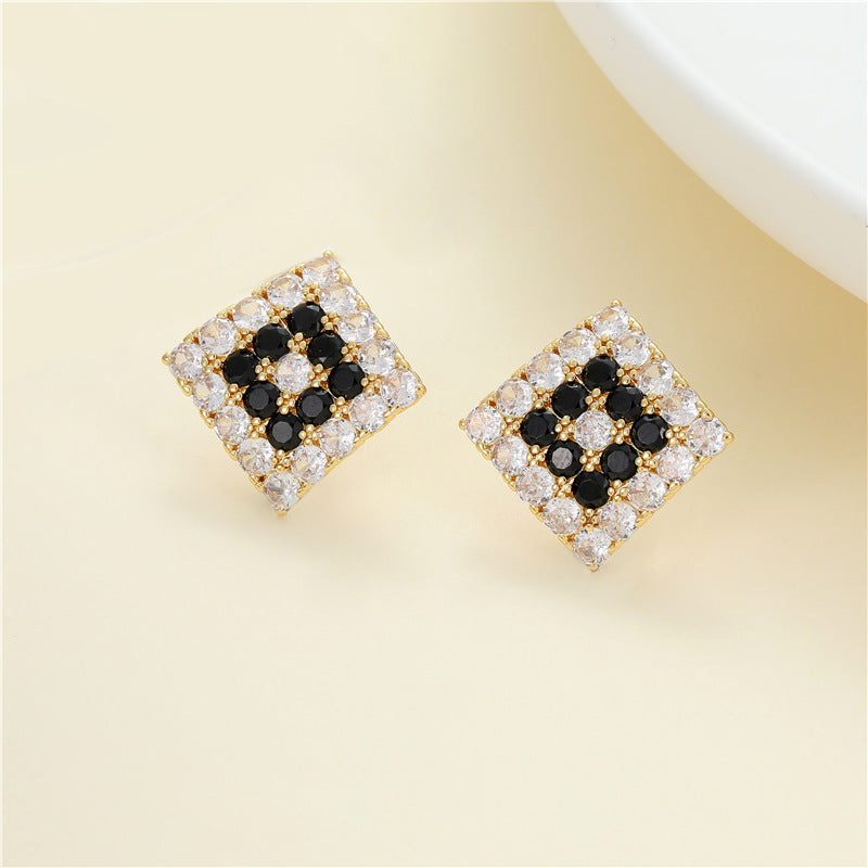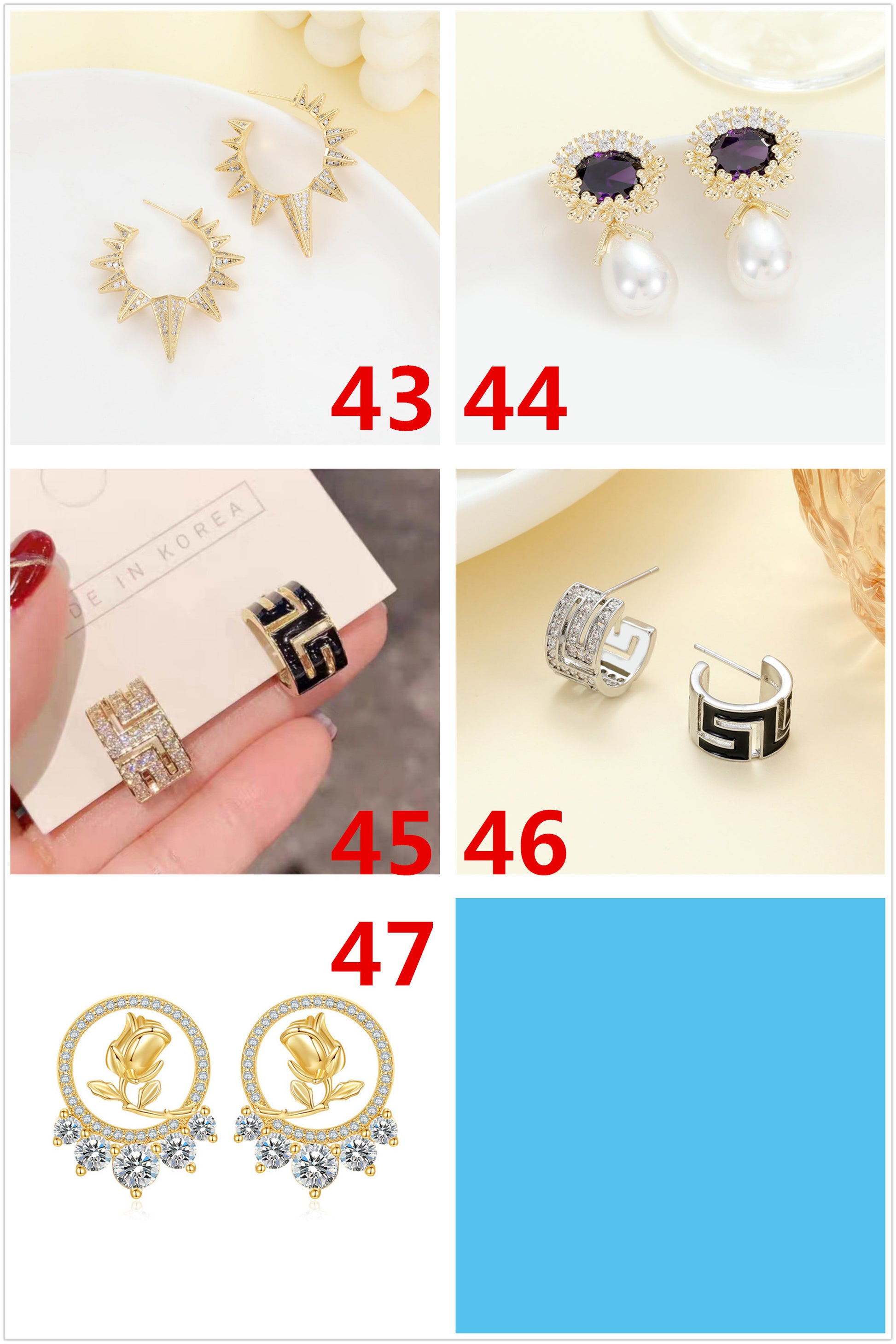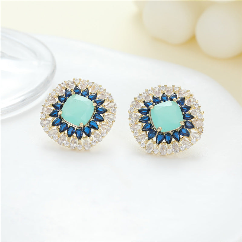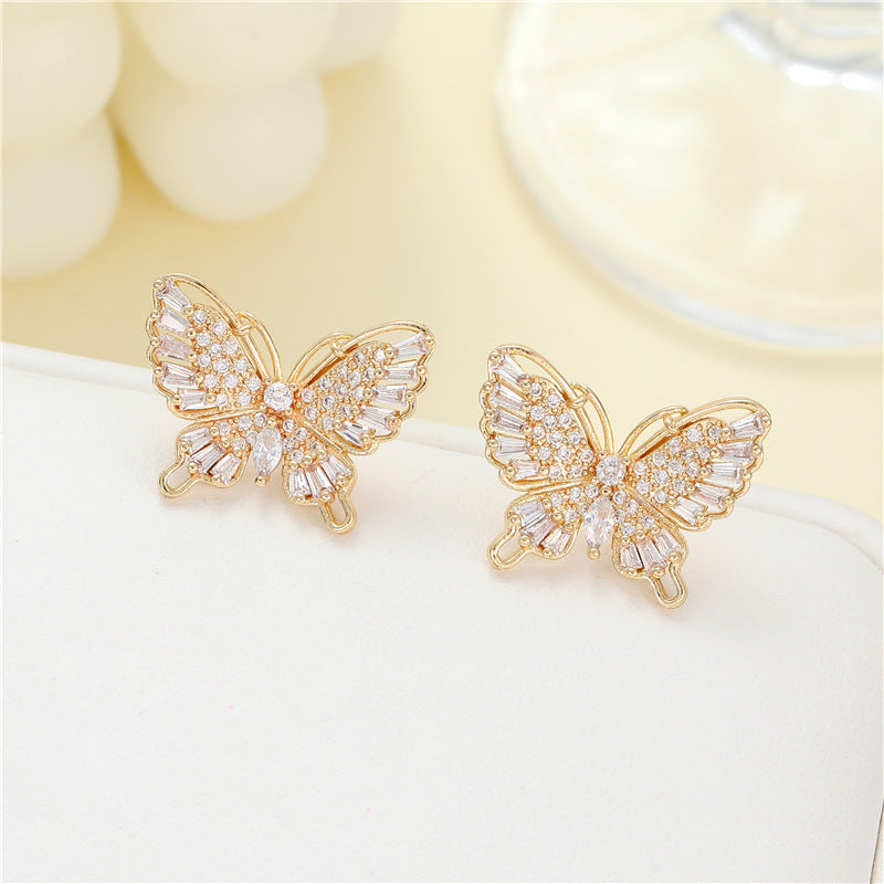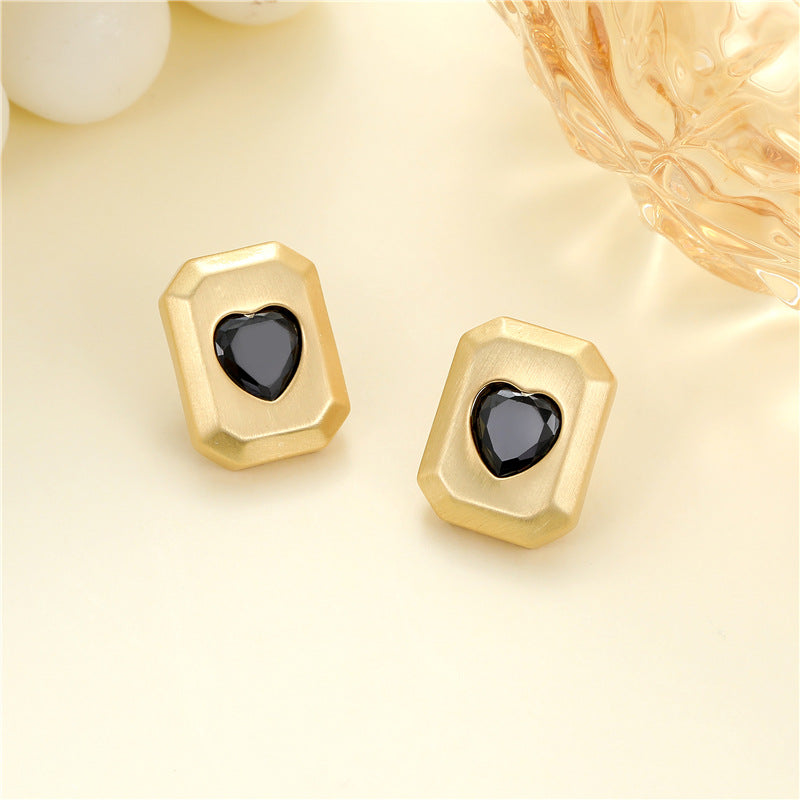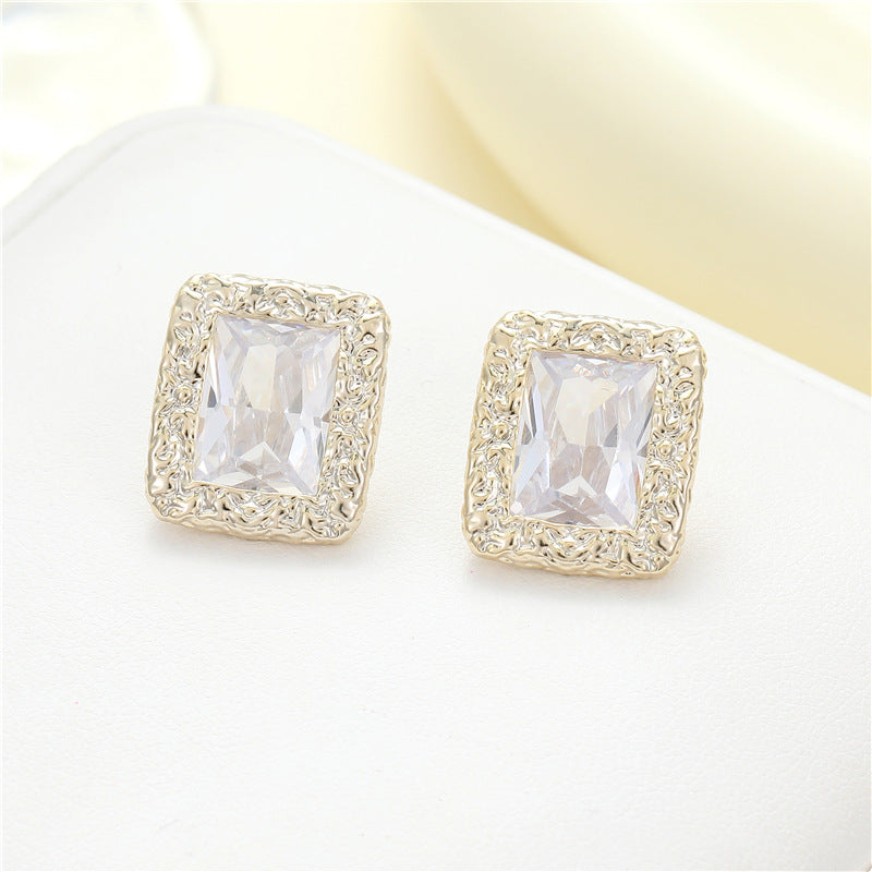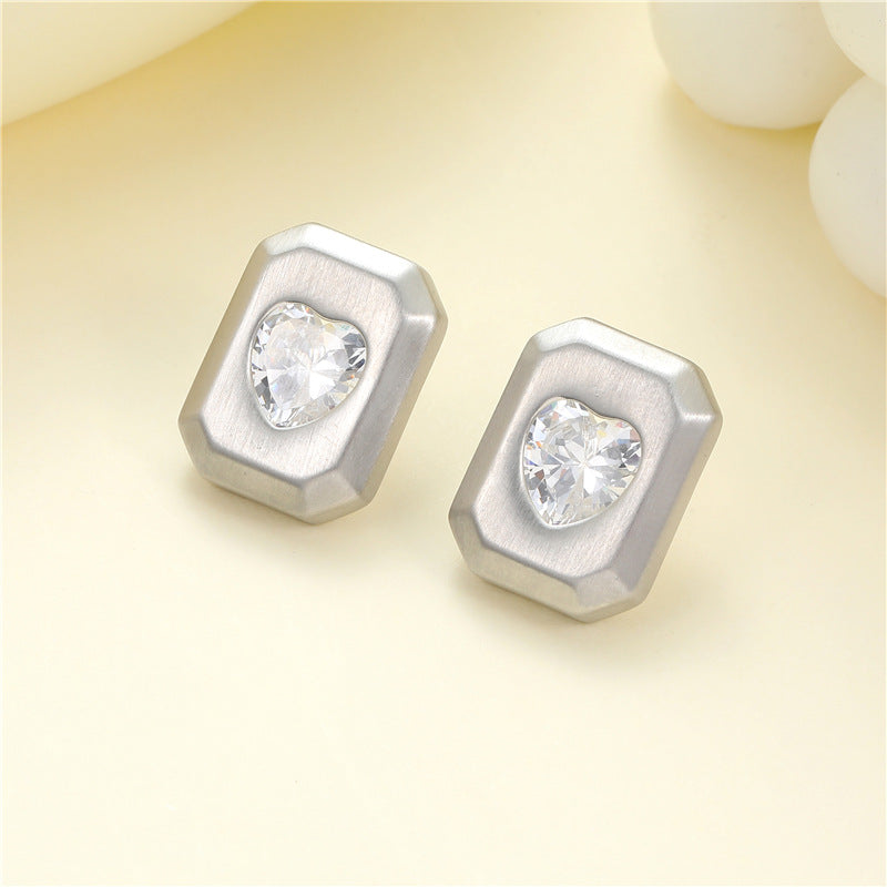 4 runde Kreis-Herzblatt-Schleifen-Rechteck-vierblättriges Kleeblatt-Ohrstecker, 14K GF-Strassverzierung