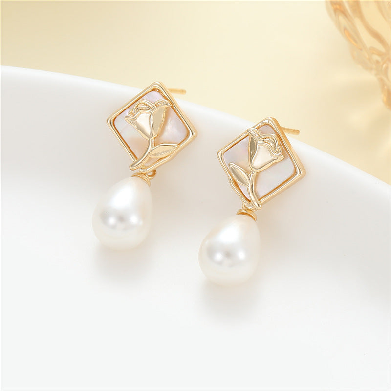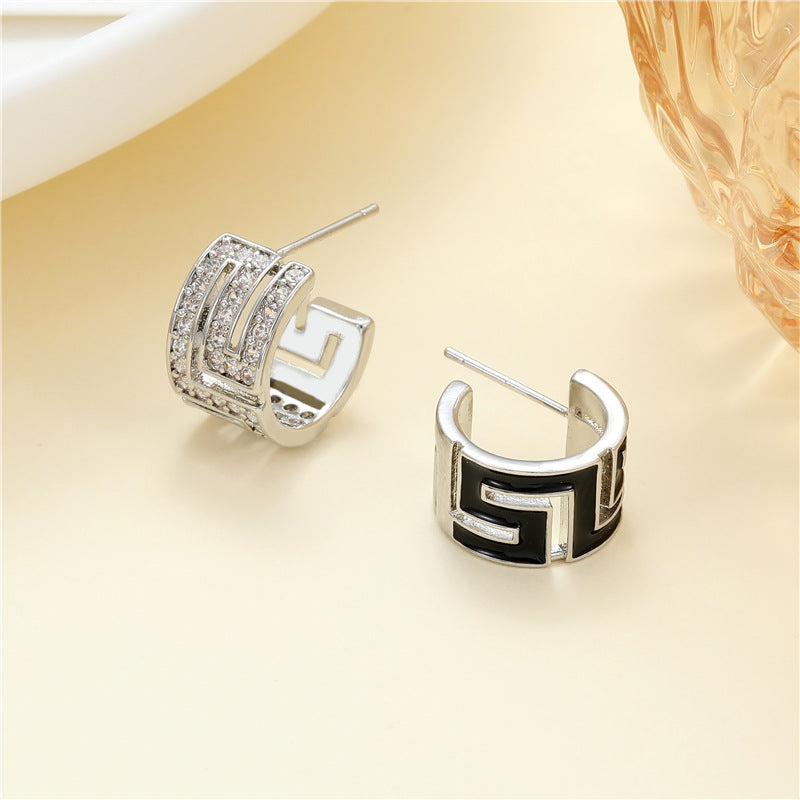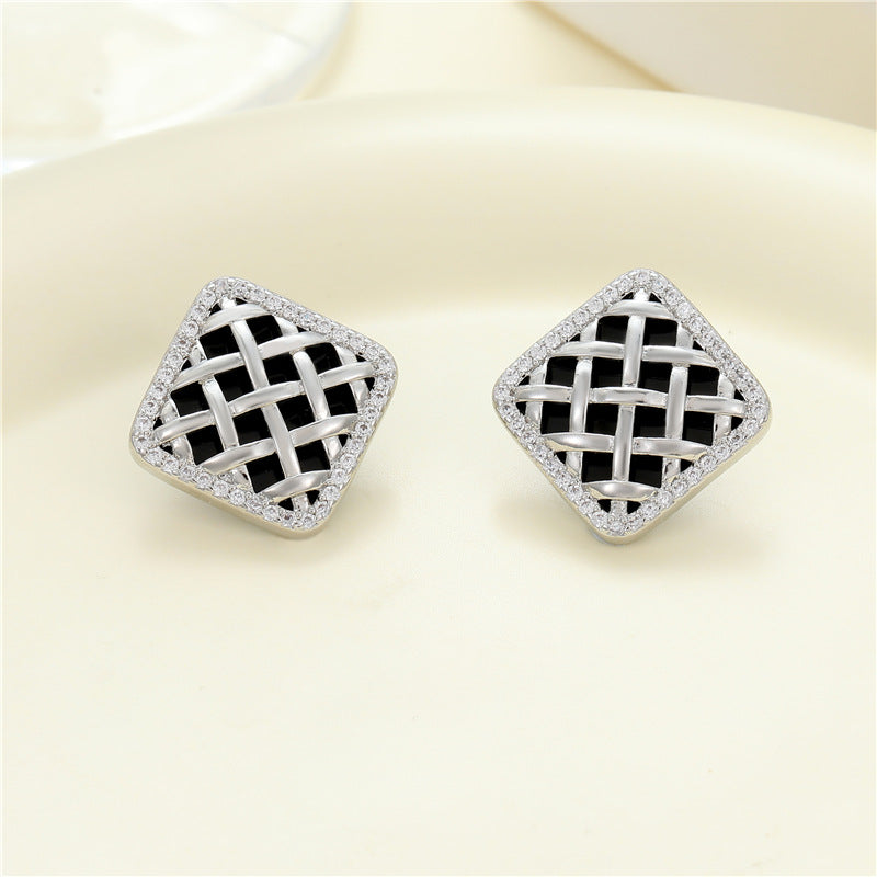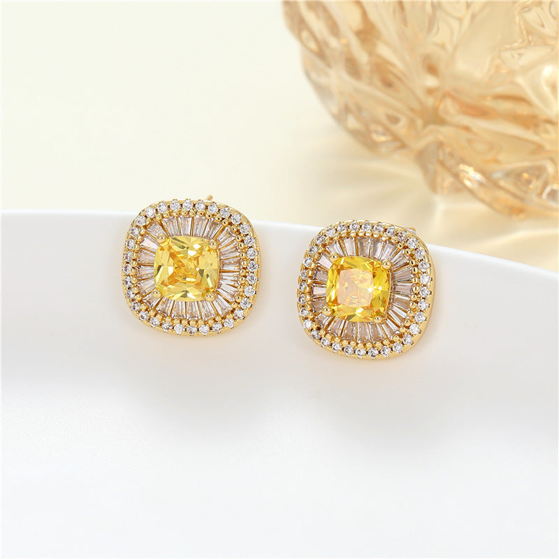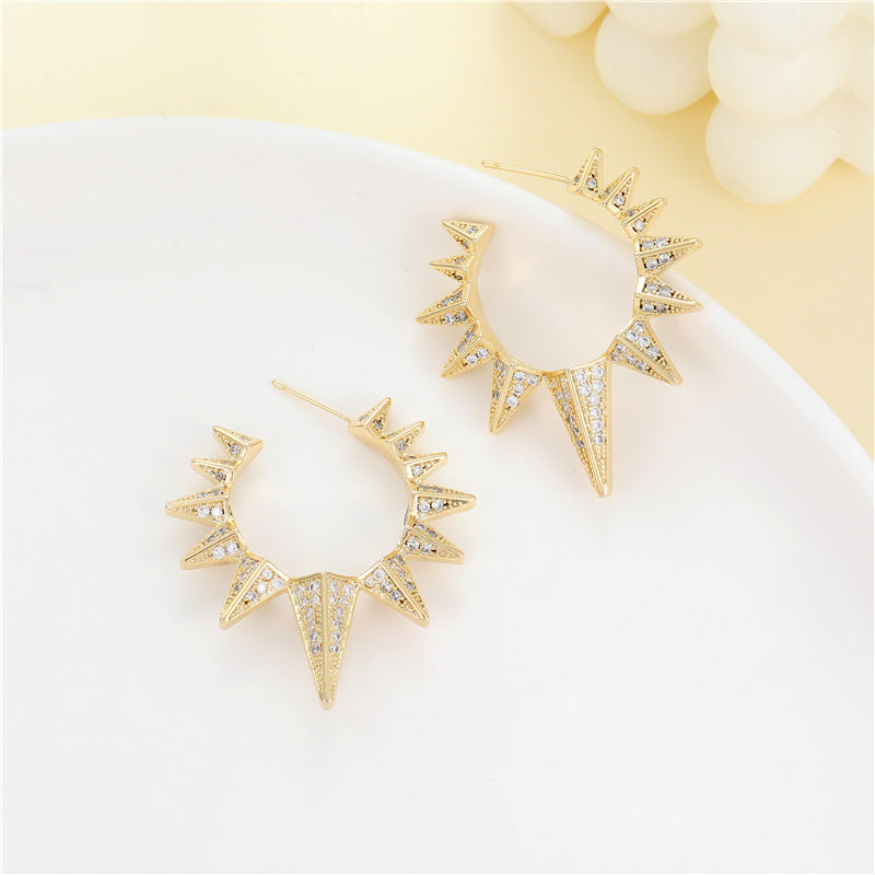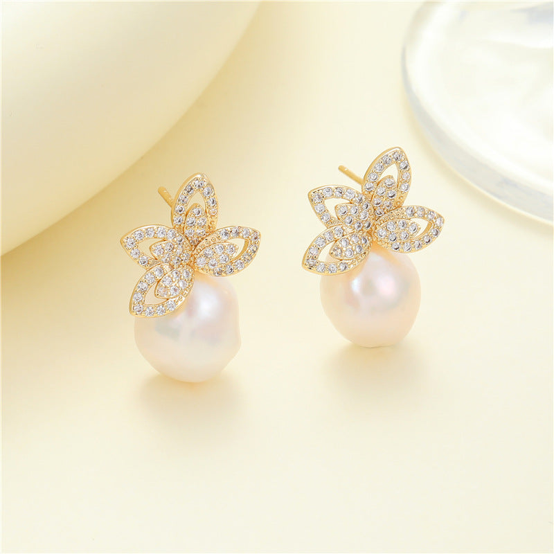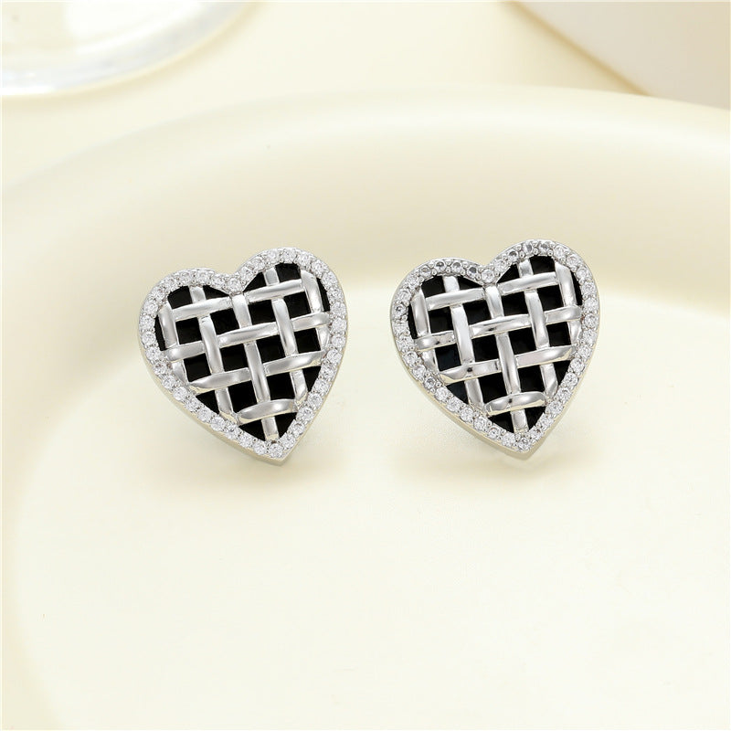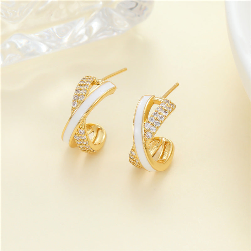 4 runde Kreis-Herzblatt-Schleifen-Rechteck-vierblättriges Kleeblatt-Ohrstecker, 14K GF-Strassverzierung
