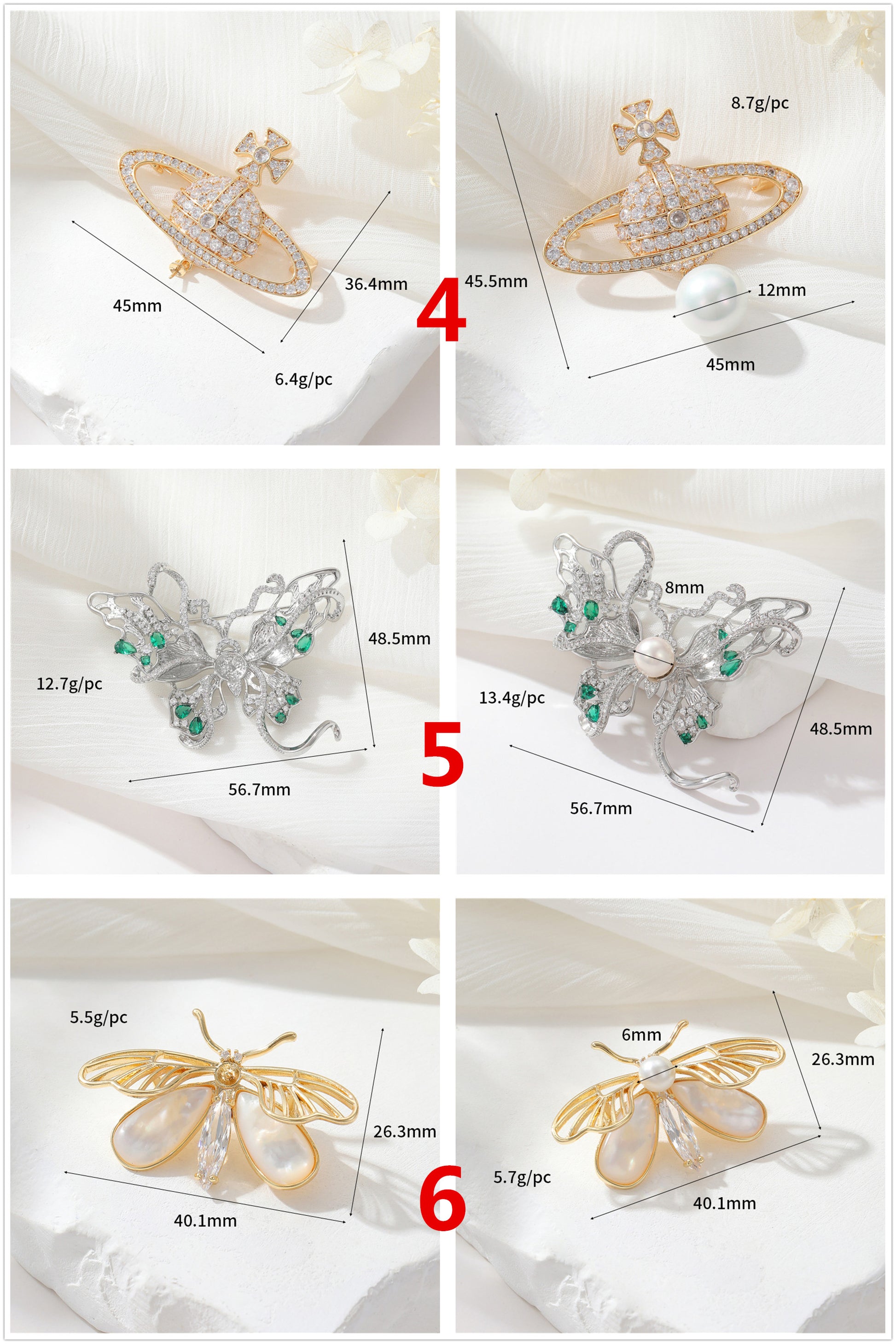 2 Blumenkrone Schmetterling Biene Brosche 14K GF Perle Muschel Strass verziert halb gebohrte Perle Perlenrohling