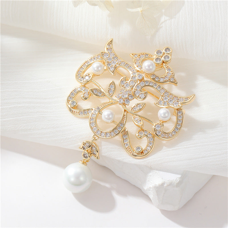 Material: Kupfer, 14 Karat Gold, Strass, Kunstperle