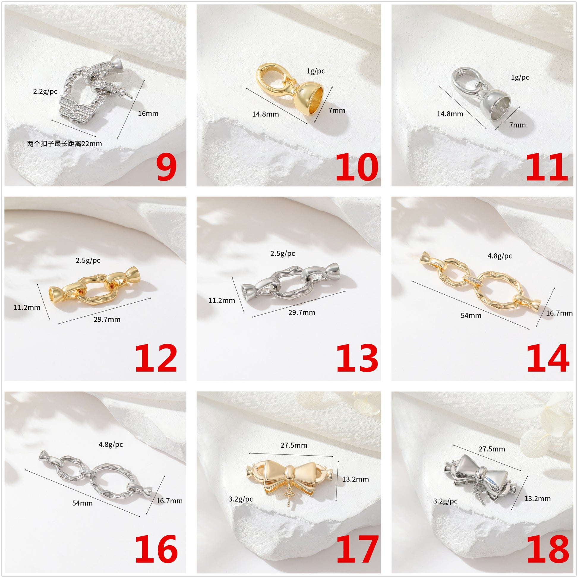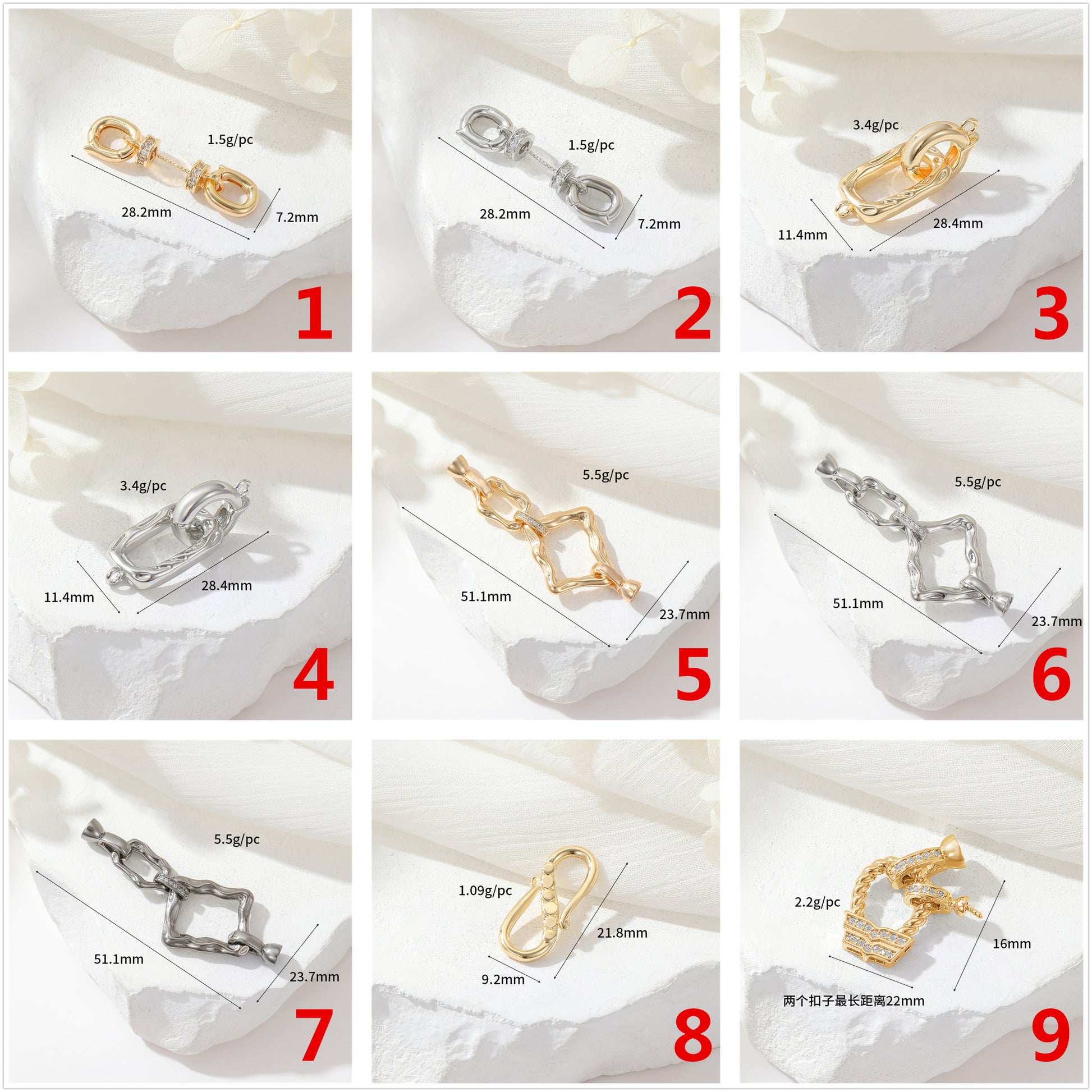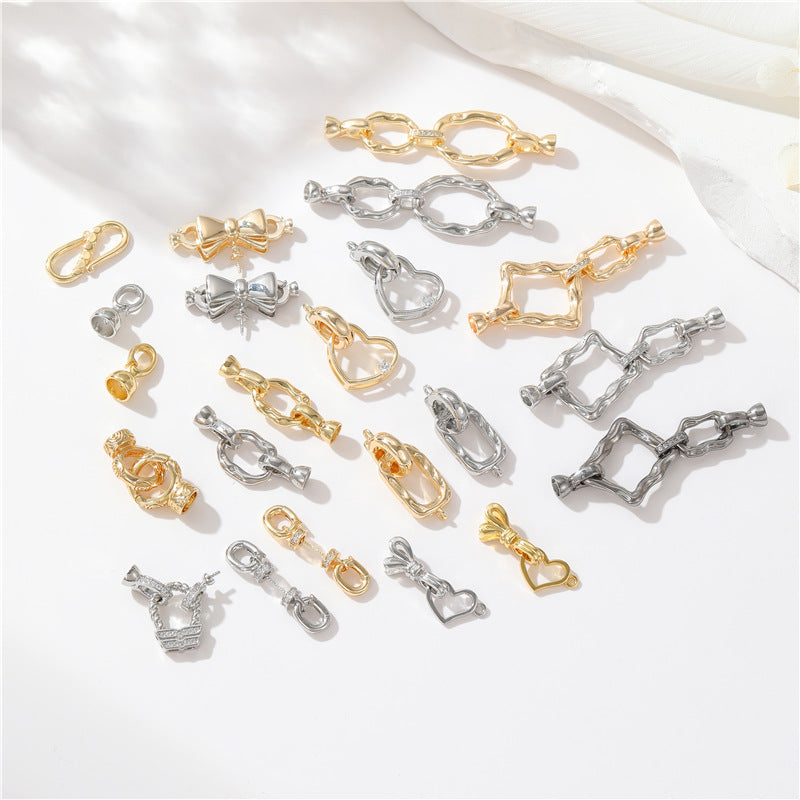 2 Schmelzkreise, quadratische, rechteckige, ovale Karabinerverschlüsse, mit Strasssteinen verziert, 14K GF-Federschnallenverschlüsse, Verbinder