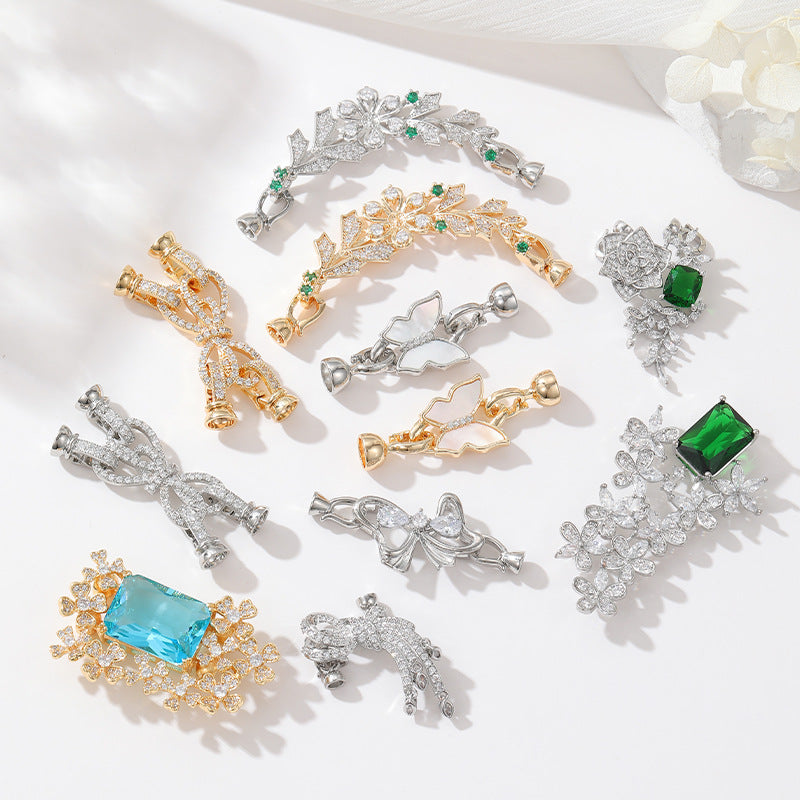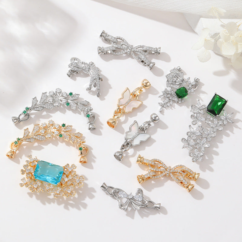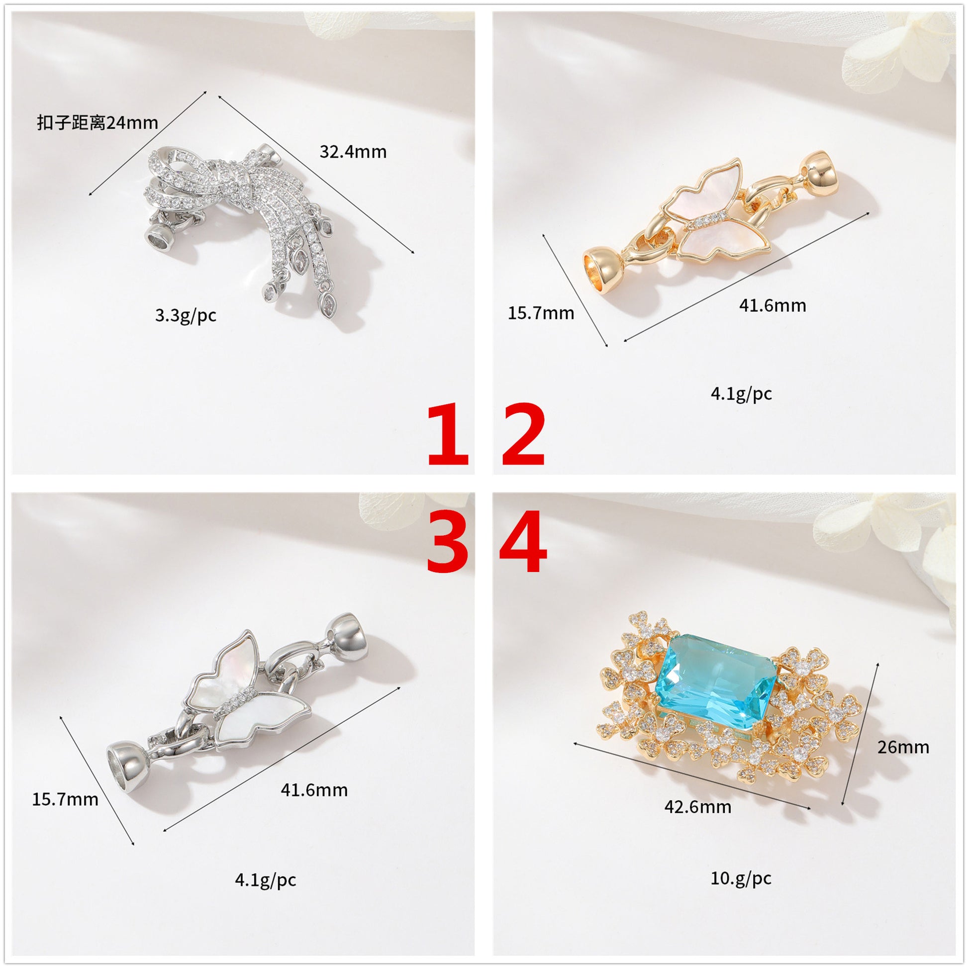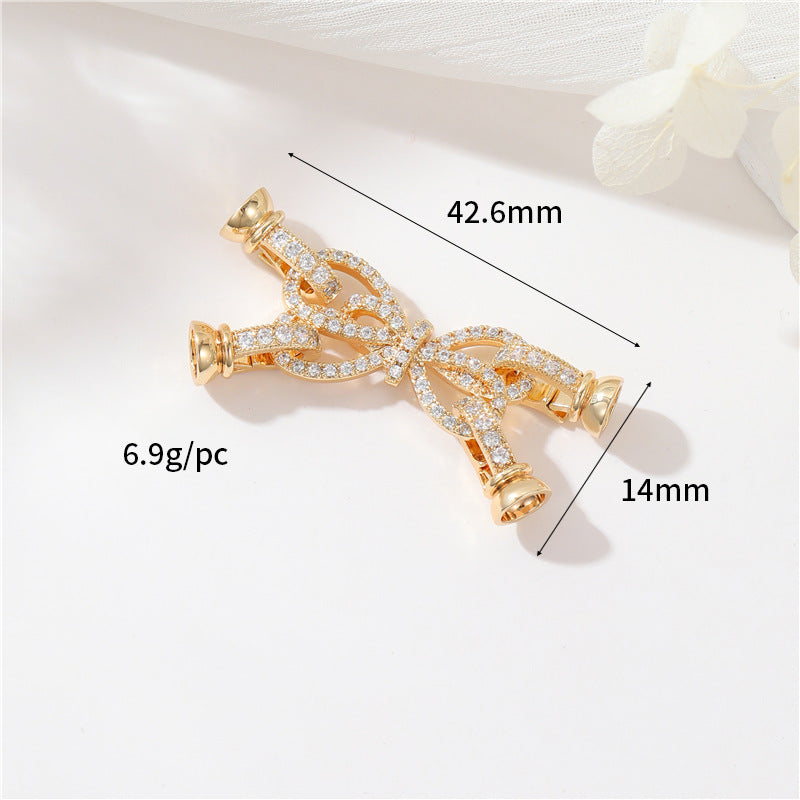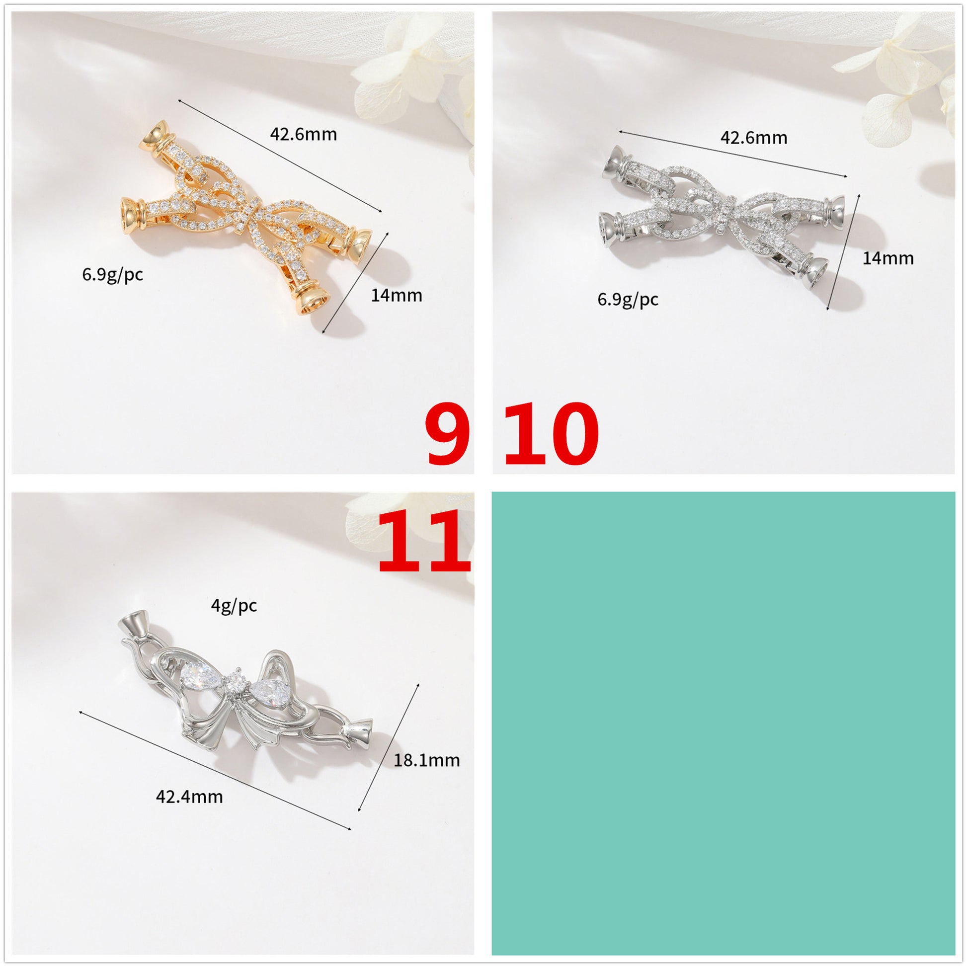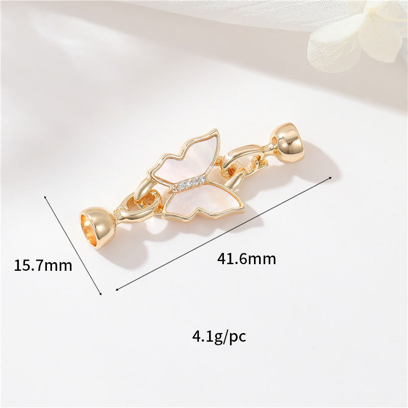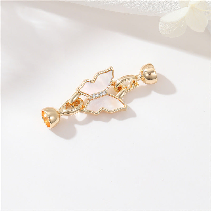 2 Schleife, Schmetterling, Blumen-Karabinerverschluss, Muschel-Strasssteinverzierung, 14-karätige GF-Federschnallenverschlüsse, Verbinder