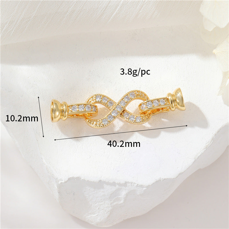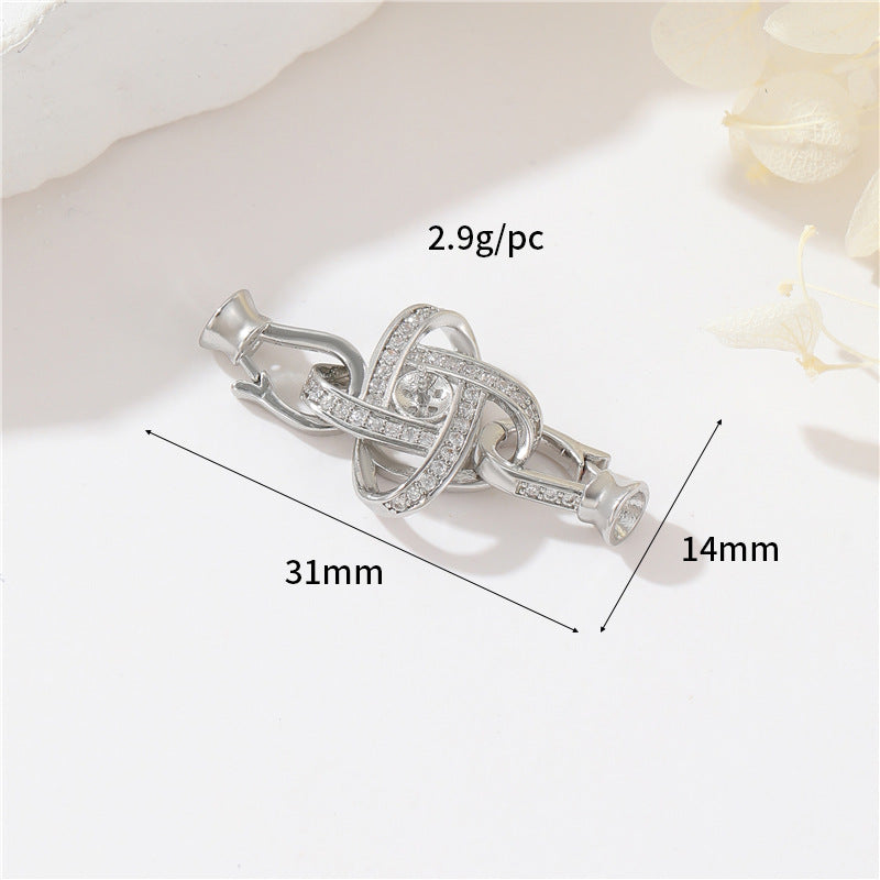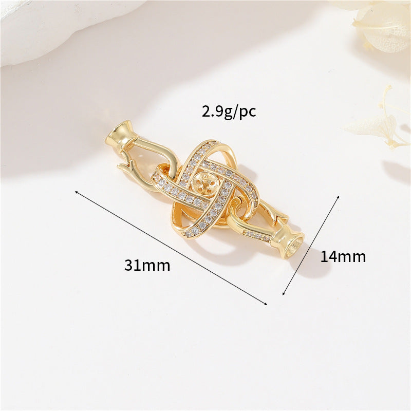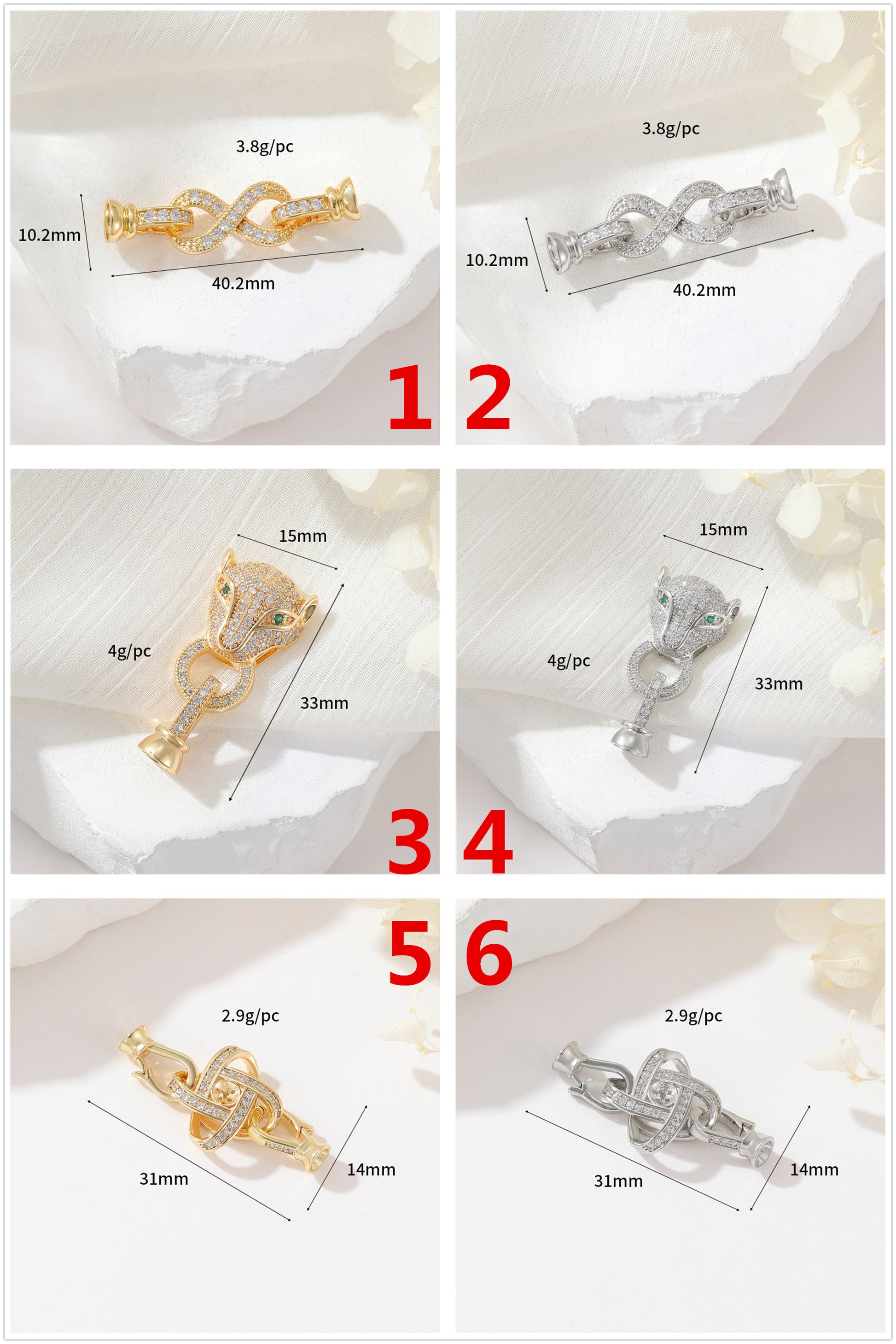 2 Unendlichkeits-Rundkreis-Leoparden-Blumenknoten, ovaler Karabinerverschluss, mit Strass verziert, 14-karätige GF-Federschnallenverschlüsse, Verbinder