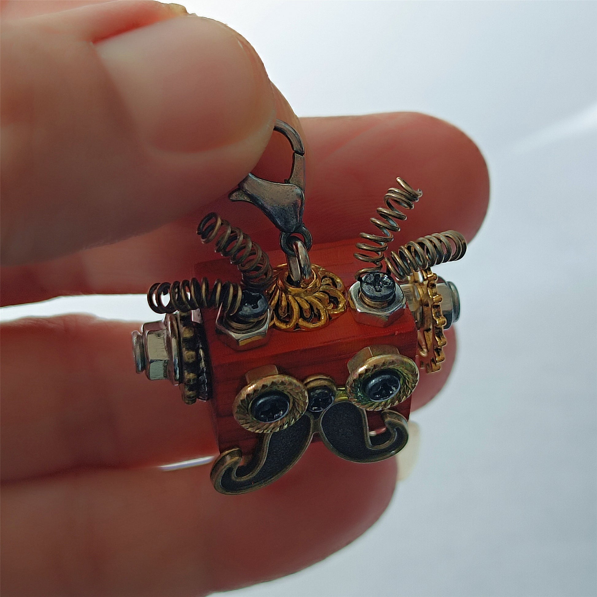 Diese hölzerne Steampunk-Roboter-Halskette kann Ihren Stil verbessern. Die Größe dieses Holzanhängers ist sehr klein, und er hat auch eine ideale Größe, um Ihren Schlüsselbund zu schmücken oder als Statue oder Messerschmuck verwendet zu werden. Seine einzigartigen Holz-, Metall-, Schrauben- und Mutternmischungen sorgen für eine auffällige Steampunk-Ästhetik, die auf jeden Fall einen tiefen Eindruck hinterlassen wird.