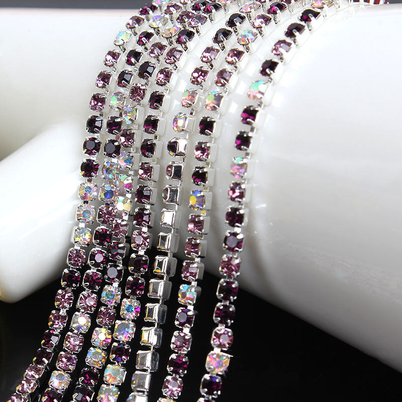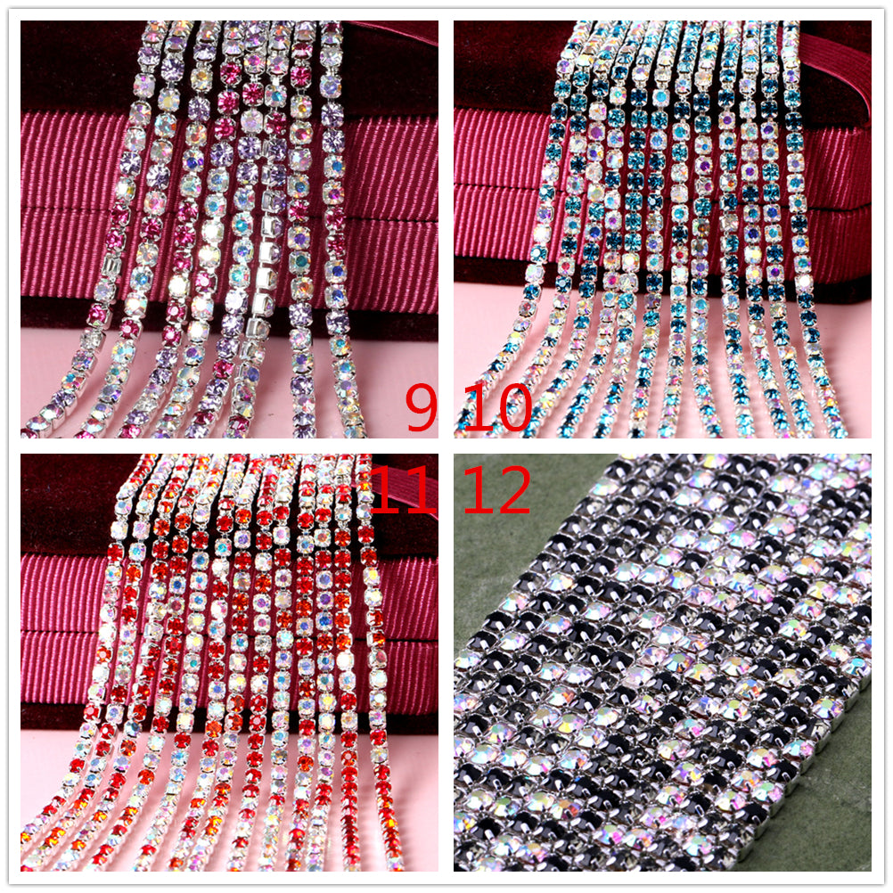10yd MixColor Strass Cup Kette Silber Trim Metall Cup Close Chain Schmuck Hochwertige Hochzeit Schleier Finden 2mm 2,5mm 2,8mm 3mm