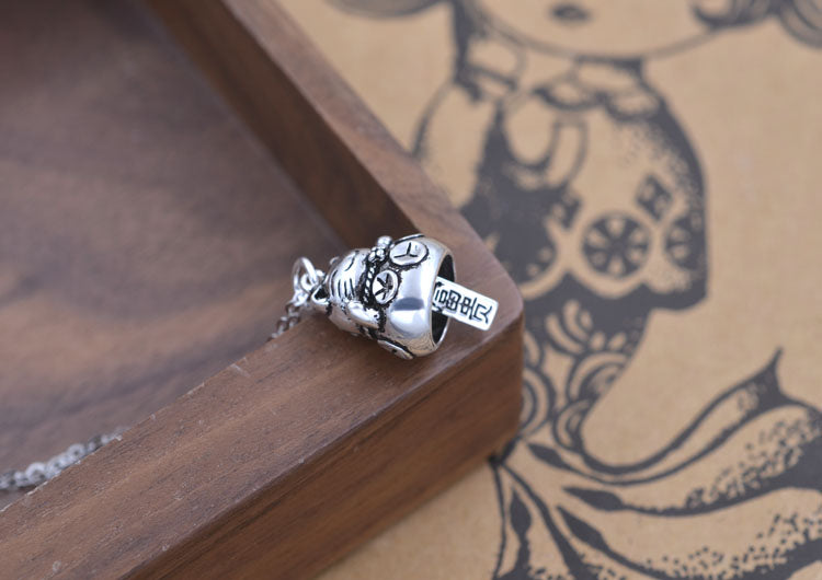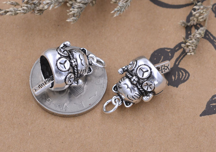 Sterling Silver Tiny Wealth Cat Windbell Charm Pendant S925 Finding