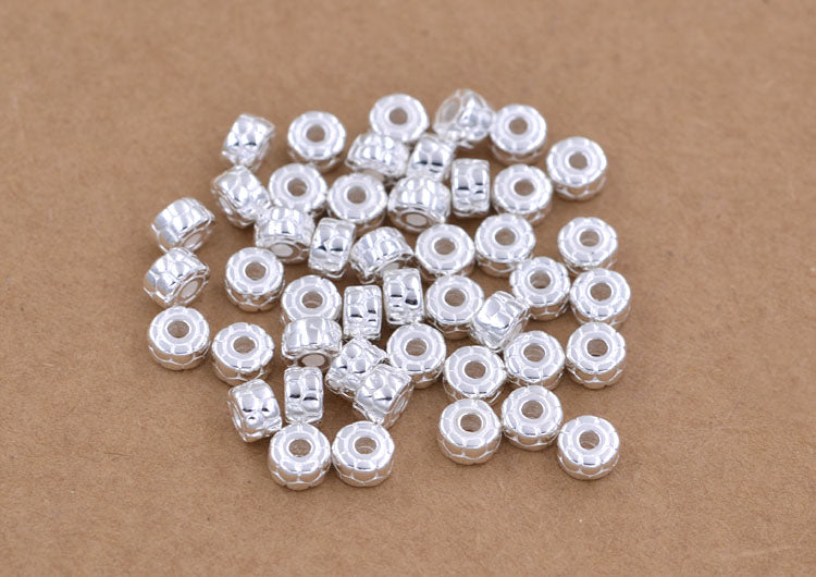 Sterling Silver Dragon Scale Flat Cylinder Rondelle Bead S925 Finding