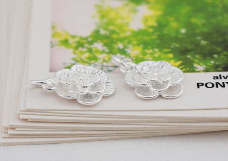 Sterling Silver Tiny Peony Floral Charm Pendant S925 Finding