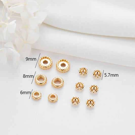 10 pièces de perles rondes sculptées carrées brillantes, entretoise de perles de charme en cuivre 14K GF