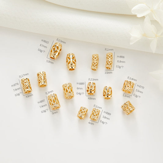 10 minuscules perles de colonne de tambour floral creux 14K GF Charm Beadwork Spacer