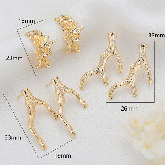 4 boucles d'oreilles à tige en corne de renne avec boucle 14K GF Earing