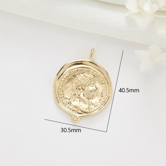 Pendentif à breloque pièce de monnaie 2 portraits 14K GF