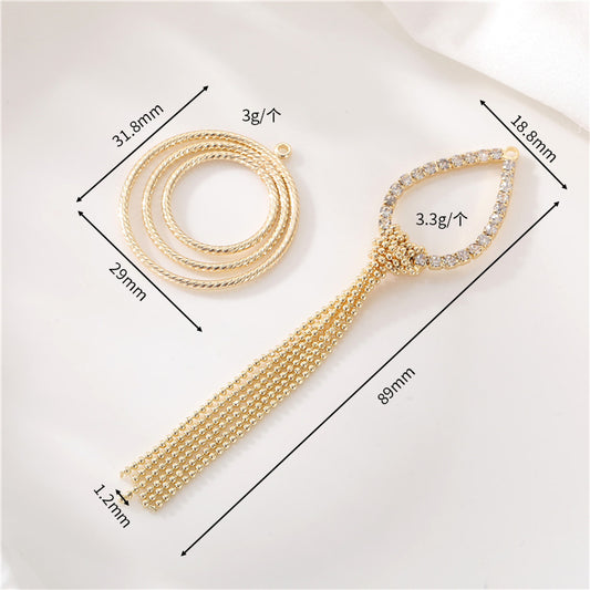 2 pendentifs à pompon perlé à breloque en forme de cercle rond sculpté 14K GF