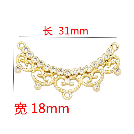 2 connecteurs de charme floral creux à boucles multiples ornés de strass 14K GF