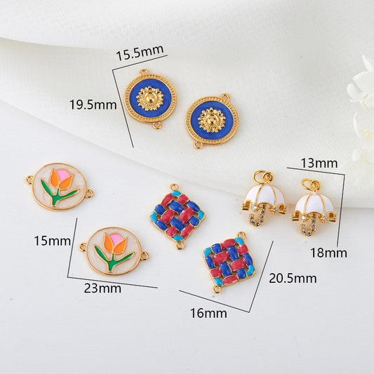 2 Carrés Tresse Parapluie Tulipe Soleil Charme Pendentif Émail Époxy 14K GF