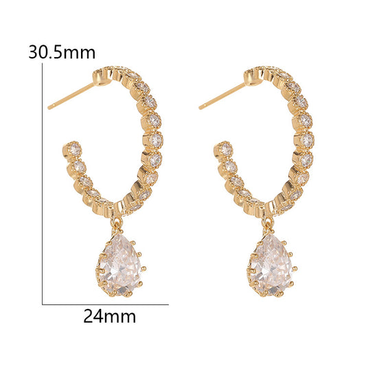 4 boucles d'oreilles à breloques en forme de goutte d'eau, demi-cercle sculpté, ornées de strass, boucles d'oreilles GF 14K