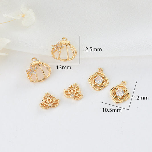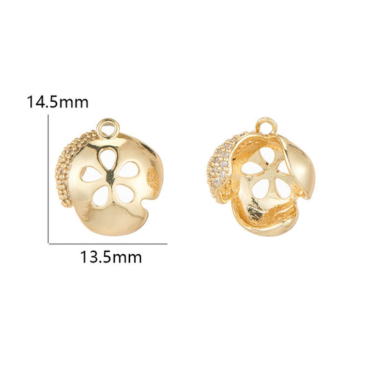 2 pendentifs à breloques en forme de coquille florale creuse ornés de strass 14K GF