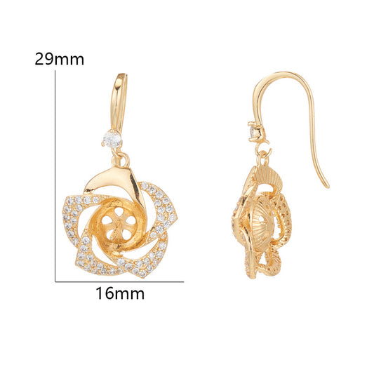 4 boucles d'oreilles à crochet floral rose ornées de strass 14K GF boucle d'oreille demi-percée perle vierge