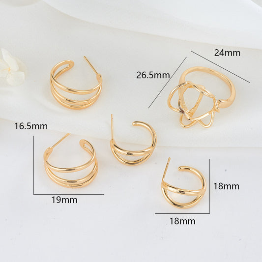 4 grosses boucles d'oreilles à tige demi-cercle 14K GF Earing