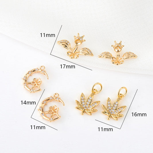 2 pendentifs à breloques floraux en forme de feuille de lune ornés de strass 14K GF à moitié percés en perles vierges