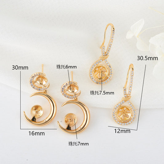 Boucles d'oreilles à tige 4 lunes, ornées de strass, 14 carats, GF, perles semi-percées, vierges