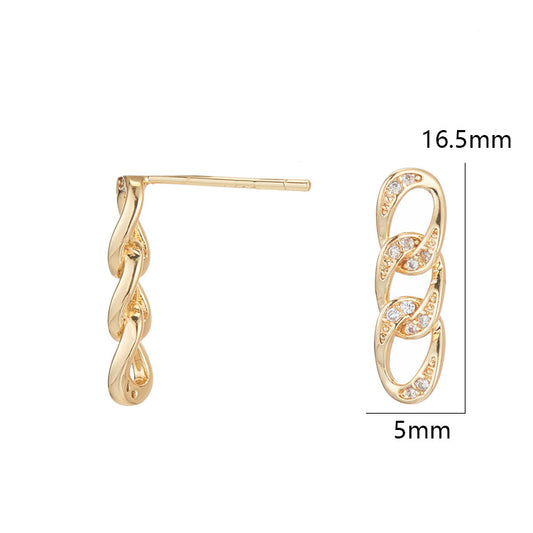4 boucles d'oreilles à tige en chaîne torsadée incurvée, ornées de strass 14K GF