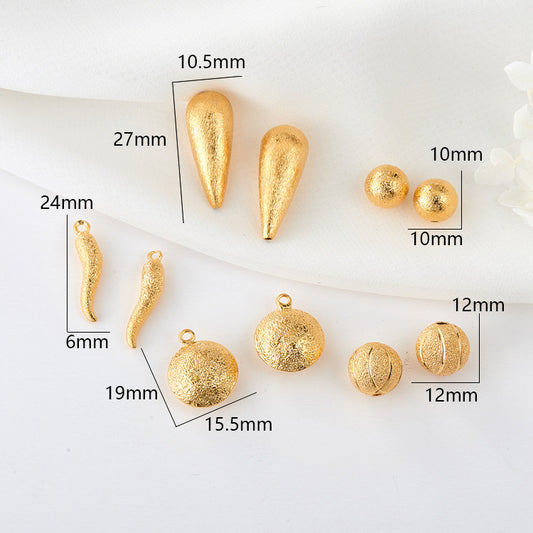 10 Perle ronde givrée Corne italienne Roundelle Charm Pendentif 14K GF