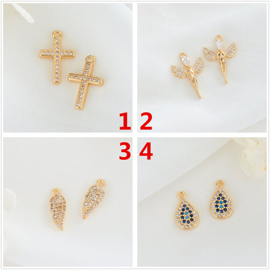 2 pendentif à breloque goutte d'eau croix aile d'ange strass embelli 14K GF