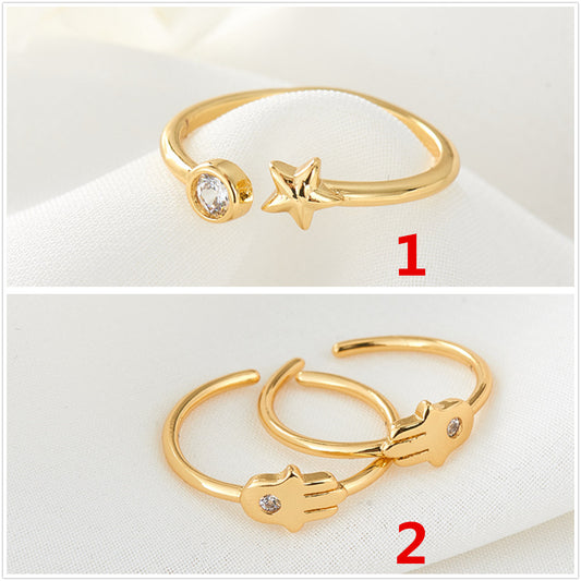 2 bagues de déclaration empilables à cercle ouvert et étoile 14K GF
