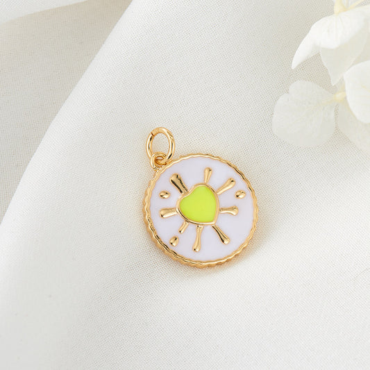 Pendentif à breloque 2 pièces rondes en émail époxy 14K GF