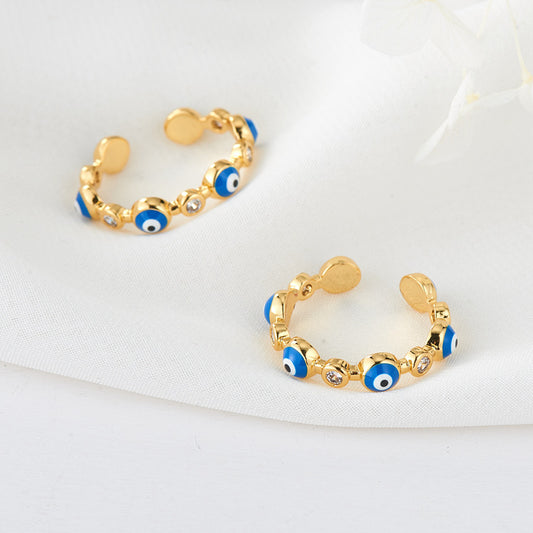 2 cercle ouvert empilable mauvais œil déclaration anneau émail époxy strass embelli 14K GF