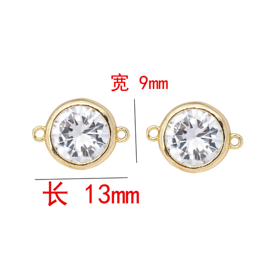 10 connecteurs de charme en pierre ronde à double boucle ornés de strass 14K GF