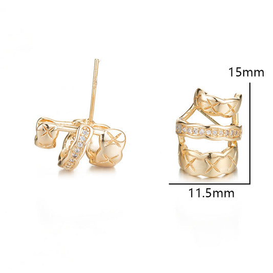 4 boucles d'oreilles à tige épaisses en demi-cercle ornées de strass 14K GF Earing