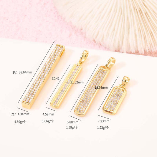 2 pendentifs à breloques en forme de barre de bâton cubique ornés de strass 14K GF