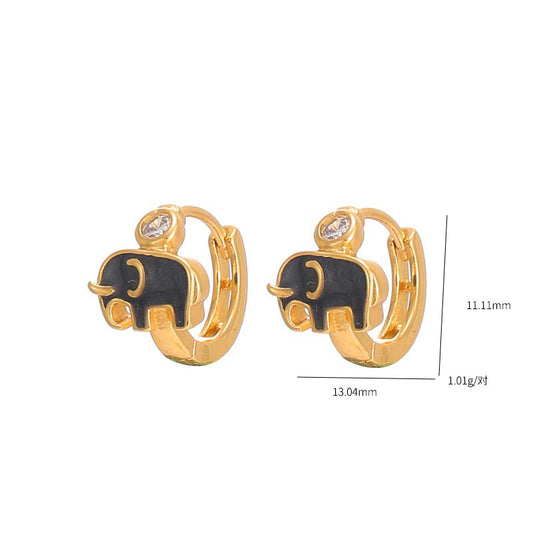 4 boucles d'oreilles créoles éléphant émail époxy strass embellies 14K GF boucle d'oreille
