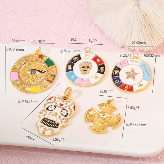 2 étoiles Skull Eye Coin Charm Pendentif Émail Epoxy 14K GF Strass Embelli