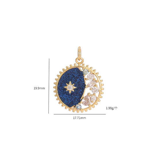 2 Moon Star Charm Pendentif Émail Epoxy 14K GF Strass Embelli