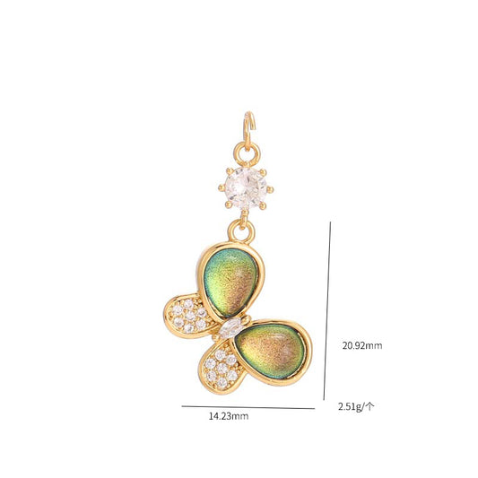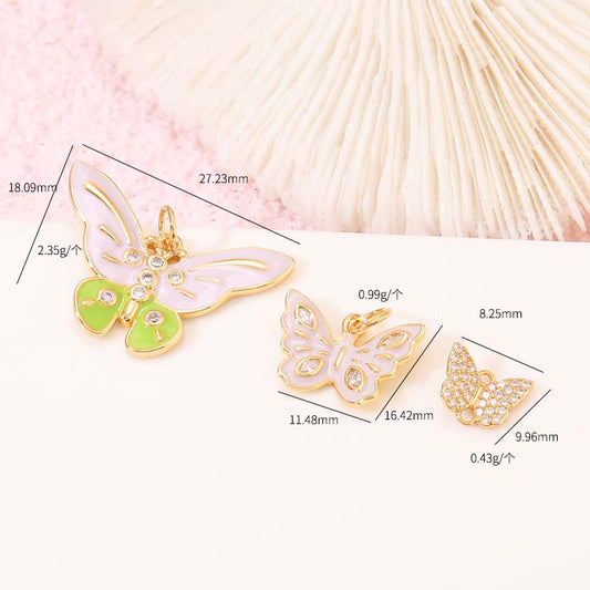 2 Pendentif Charme Papillon Émail Epoxy 14K GF Strass Embelli