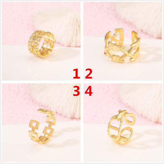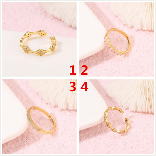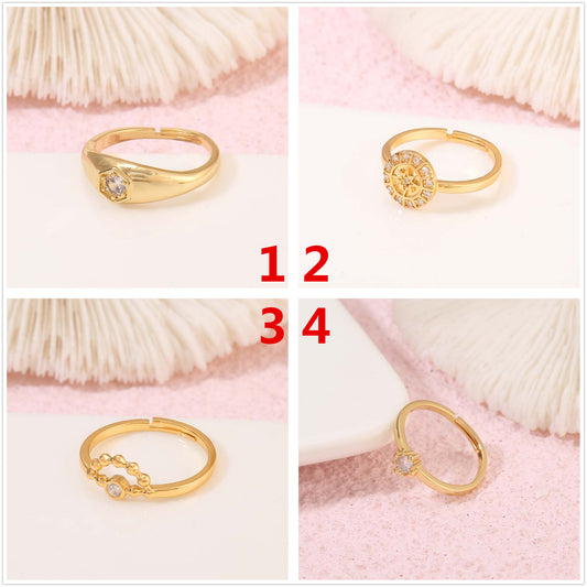 2 bague de déclaration boussole cercle ouvert strass embelli 14K GF