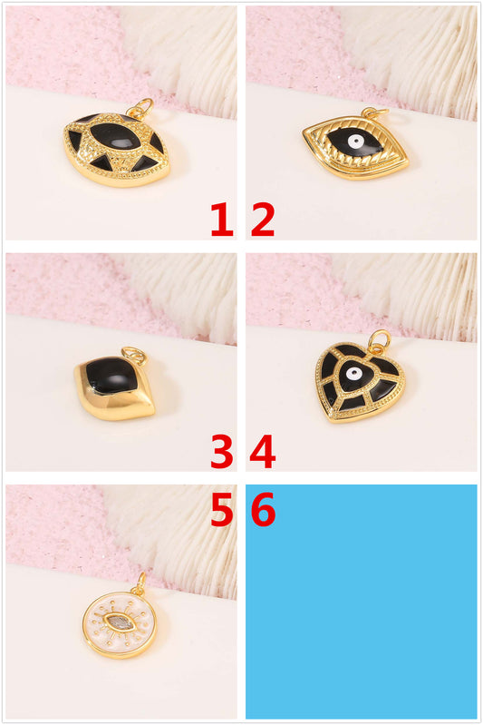 2 Evil Eye Charm Pendentif Émail Epoxy 14K GF Strass Embelli