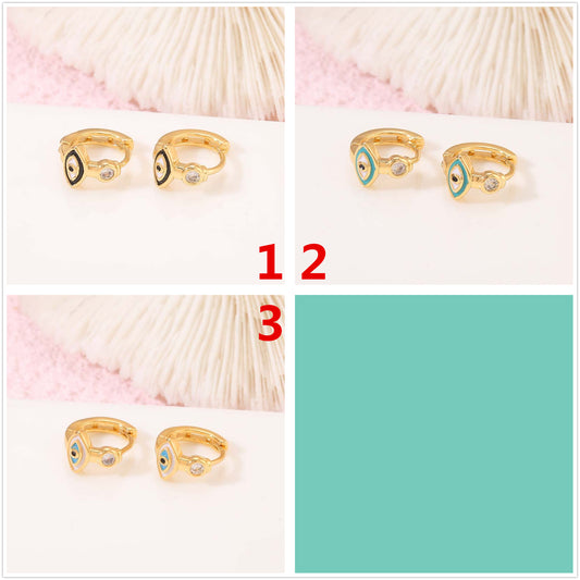 4 boucles d'oreilles créoles mauvais œil émail époxy strass embelli 14K GF boucle d'oreille