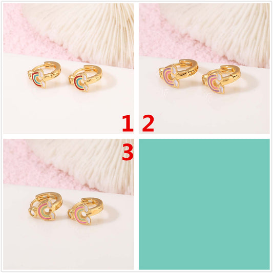 4 boucles d'oreilles arc-en-ciel en émail époxy strass embellies 14K GF Earing