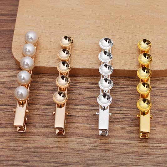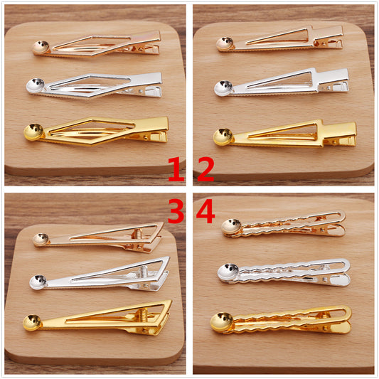 10 multiples perles coupe cheveux pince crocodile épingle à cheveux 18KGP 8mm ronde non poreuse Base vierge réglage de la pièce de pierre précieuse