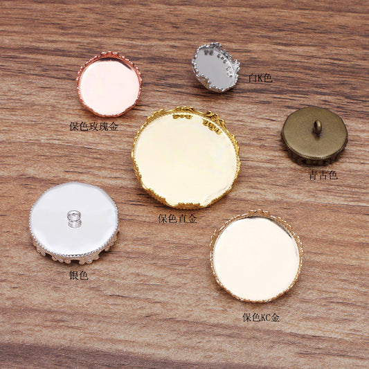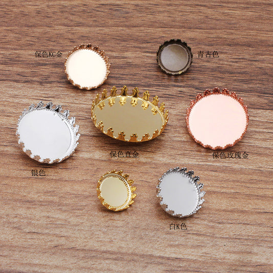 50 bouton de coupe de lunette de bord de couronne 18KGP 12mm 15mm 20mm 25mm cabochon rond Base vierge réglage de pièce de pierre précieuse