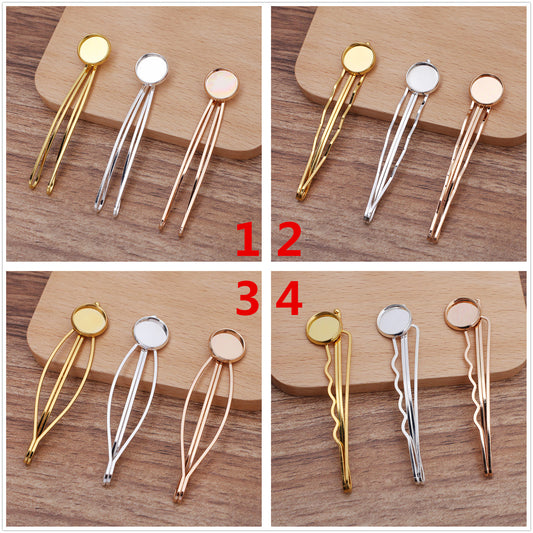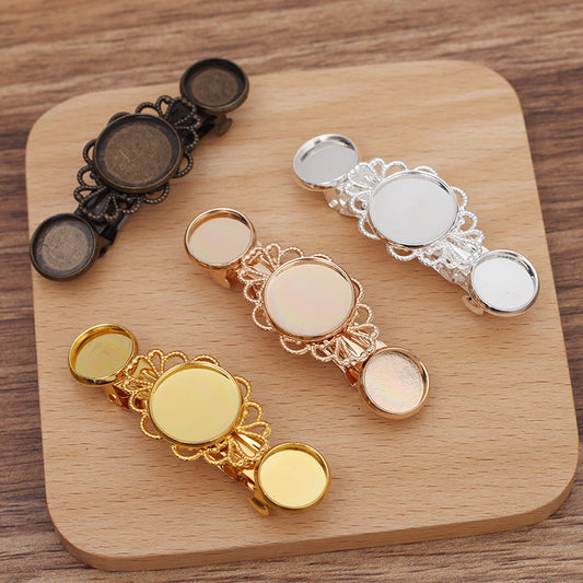 10 trois bords unis lunette coupe cheveux Snap Clip épingle à cheveux 18KGP 12mm 16mm rond Cabochon Base vierge pierre précieuse pièce réglage