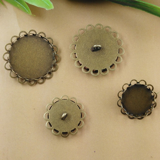200 Bouton de coupe de lunette de bord de pétoncle Bronze antique 14mm 16mm 18mm 20mm 25mm 30mm Cabochon rond Base vierge Réglage de la pièce de pierre précieuse