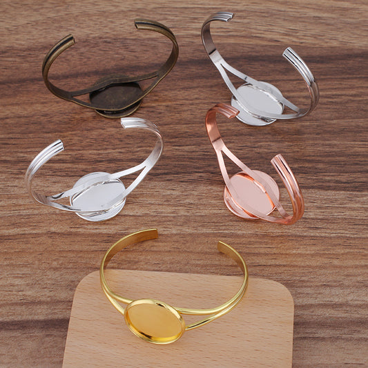 Bracelet à cercle ouvert à deux rangées de 5 bords unis, 18KGP, 20mm, 25mm, cabochon rond, Base vierge, réglage des pièces de pierres précieuses