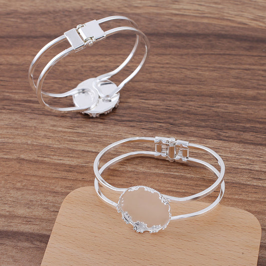 50 couronne bord lunette tasse deux rangées ouvrable cercle bracelet argent plaqué 25mm rond cabochon Base vierge pierre précieuse pièce réglage