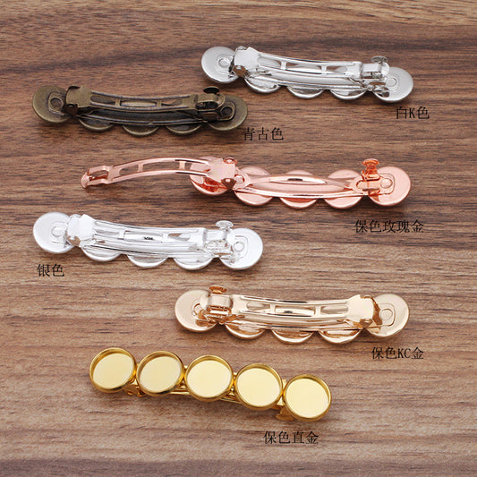 10 cinq bords unis lunette coupe cheveux Snap Clip épingle à cheveux 18KGP 12mm cabochon rond Base vierge pierre précieuse pièce réglage